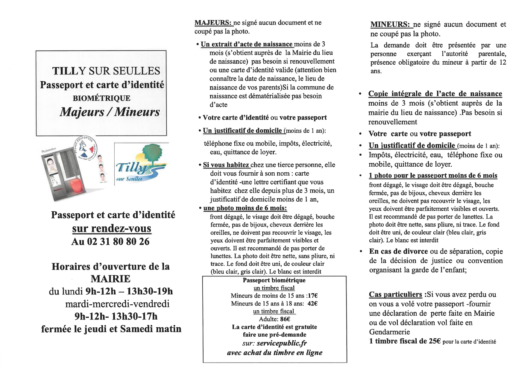 - samedi : 10h à 12h (permanence des élus)